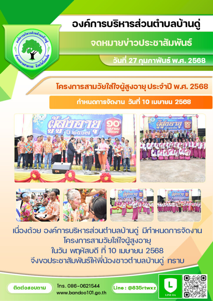 ประชาสัมพันธ์การจัดงาน โครงการสามวัยใส่ใจผู้สูงอายุ ในวันที่ 10 เมษายน 2568